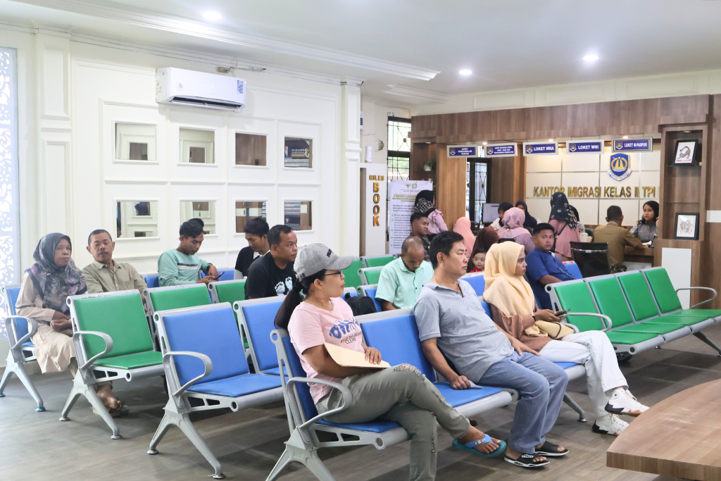 Dalam memberikan pelayanan prima kepada masyarakat Kantor Imigrasi Kelas II TPI Bengkalis menyediakan ruangan antrian yang nyaman bagi pemohon layanan keimigrasian.